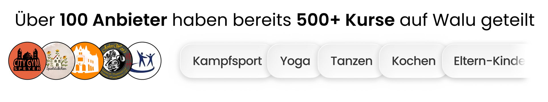 Vom Einzeltrainer über Vereine bis hin zu größeren Bildungseinrichtungen oder Sportstudios ist auf Walu alles vertreten, um Angebote professionell zu präsentieren. Genau Walu bietet dafür die Bühne, unabhängig von der Art des Kurses oder der Größe deines Unternehmens.